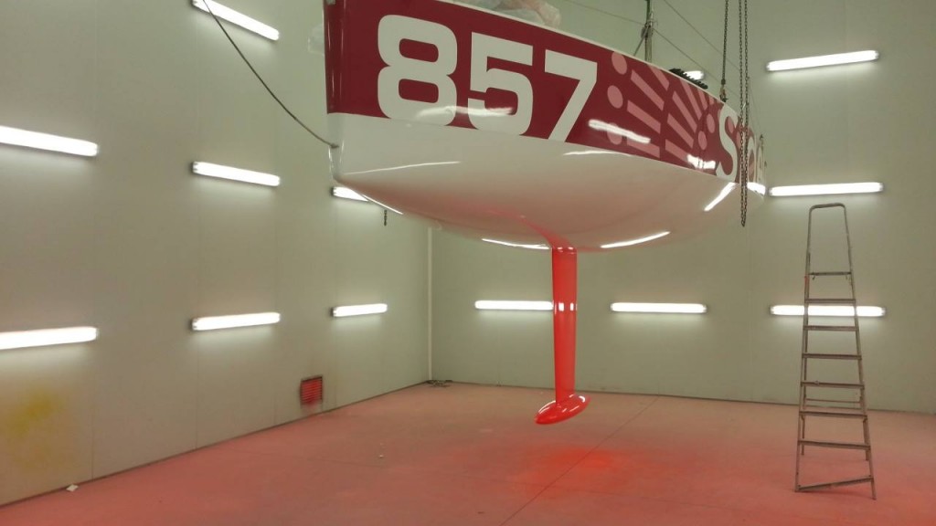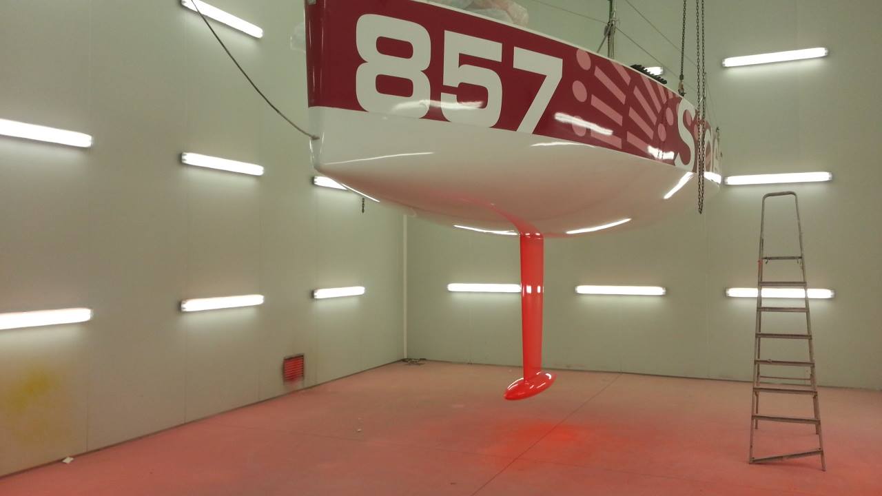 La peinture du 587 a été réalisée avec de la peinture total alexseal top clean. Nous avons testé ce produit sur déjà un grand nombre de bateaux de courses.